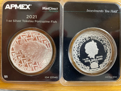 2021 Tokelau Porcupine Fish (Tautu) $5 1 oz Silver Coin Mint Direct Apmex Pkg.
